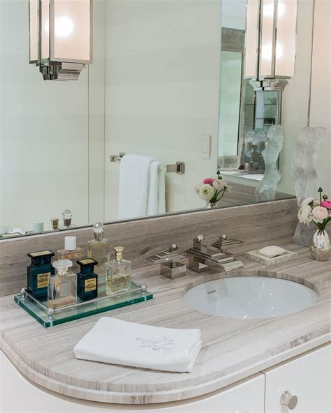 bathroom vanity tray deco dresser sink mirror master bathrooms perfume bath inspired transitional decorating decor glass single wall wooden round